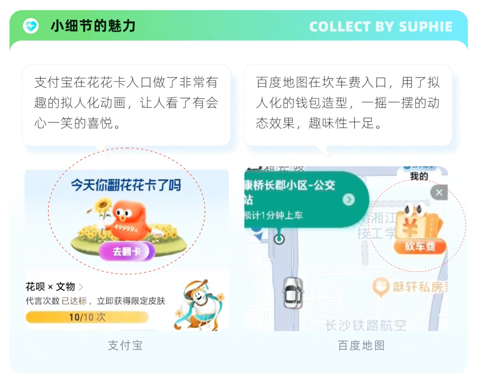 這些按鈕的差異不僅僅是位置,還包含按鈕的樣式、顏色、尺寸等等維度都存在著明顯差異。比如上圖的,頁面引導(dǎo)按鈕,支付寶的轉(zhuǎn)入轉(zhuǎn)出按鈕位置,都是一樣的邏輯,也是我們在設(shè)計(jì)中的一些設(shè)計(jì)支持業(yè)務(wù)轉(zhuǎn)化的一種方式。