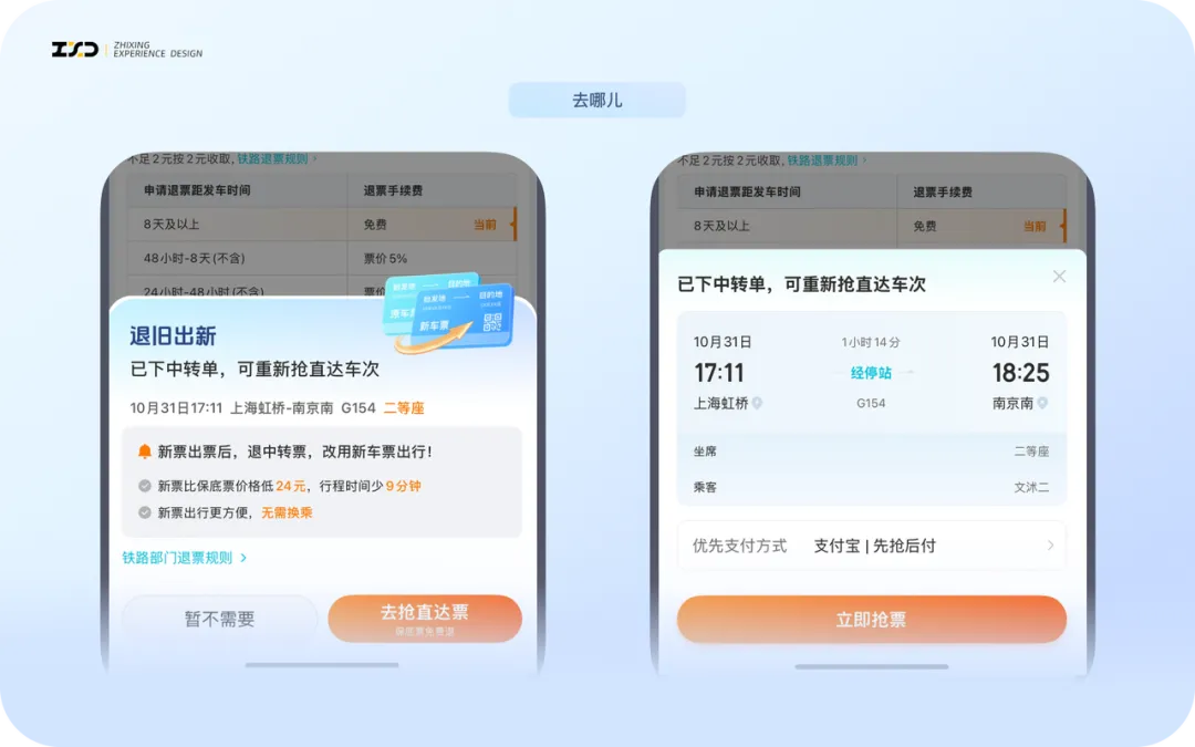 用當前的中轉作為保底,先搶票,搶到了還能再退票。讓用戶安心下單,在未搶到心儀票的時候能有中轉的替補票,可以緩解用戶的焦慮情緒,有兜底的保障安全感
