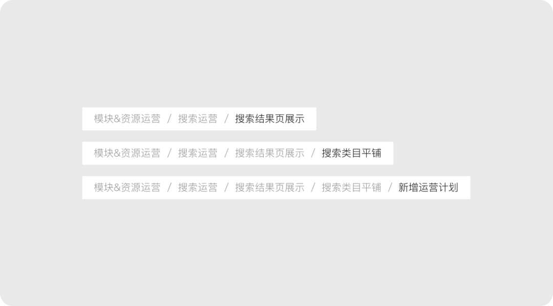 當層級大于2個時,可以利用面包屑導航,用戶可以根據(jù)面包屑導航看到當前操作的位置和軌跡,并且方便返回到任意位置。