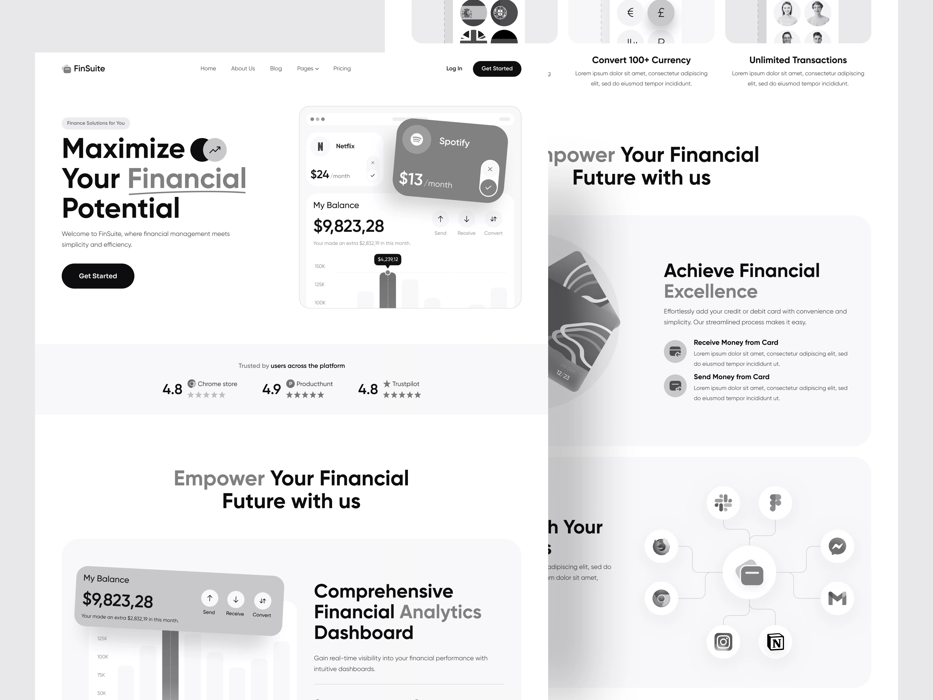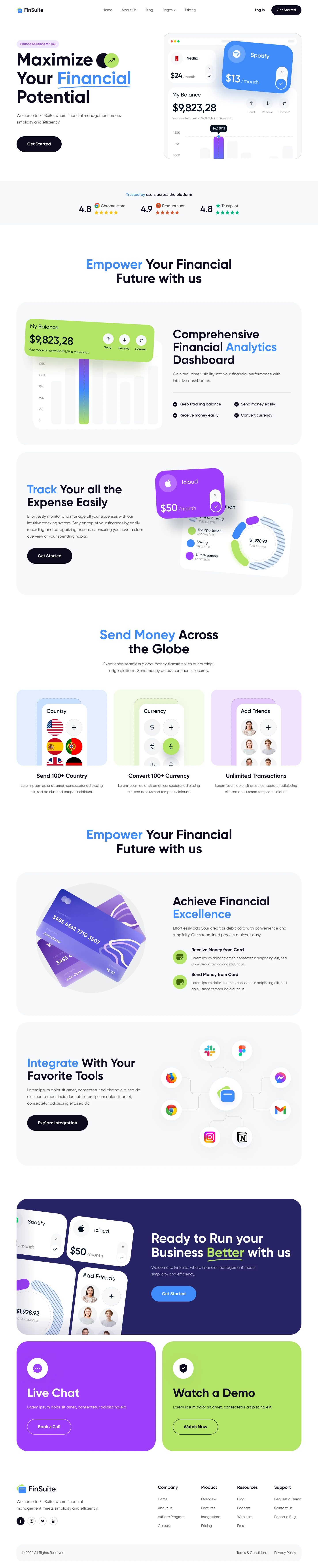 1.   Hero 區:大標題 + 產品截圖 → 直接傳達核心價值(Maximize your financial potential)。