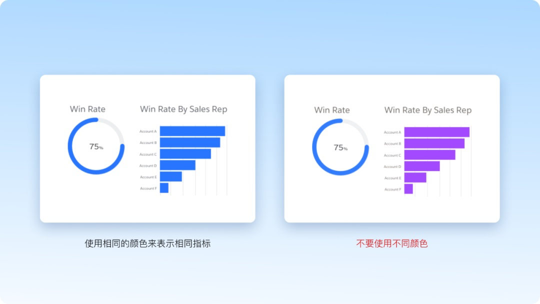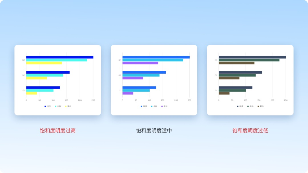 選擇一種基礎(chǔ)色,再調(diào)整色調(diào)和顏色深淺來增加均衡;設(shè)計(jì)時(shí)避免用過多的顏色。如果項(xiàng)目允許,只需使用固定的色板,通過調(diào)整基礎(chǔ)色的飽和度和明度,利用這種簡單的方式為設(shè)計(jì)增加一致性。