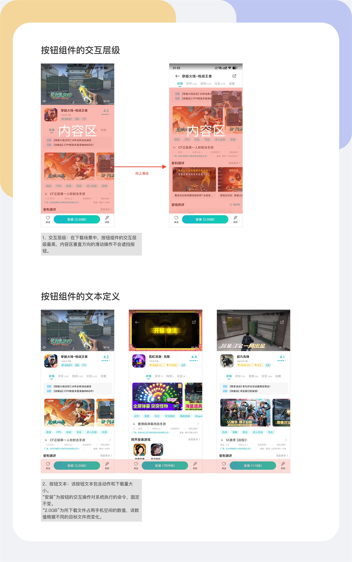 容器是包含所有視覺和交互元素的框架,包括顏色、紋理、文案和圖標(biāo)等。容器的設(shè)計(jì)應(yīng)支持按鈕的功能和美觀。