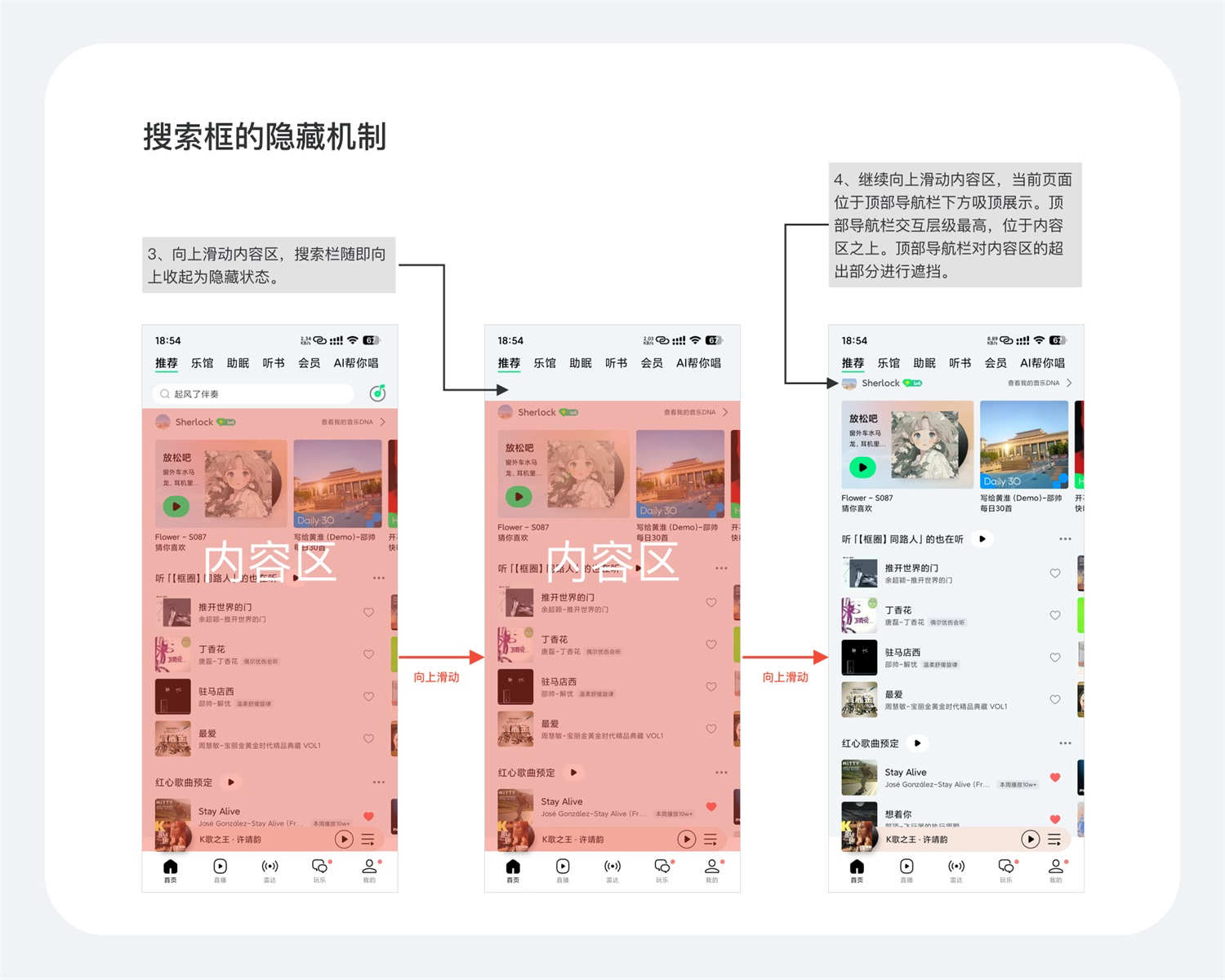 例如蝦米音樂的Tab選中態(tài)是一段音頻波線,再配合文字的大小對比,一個富有設(shè)計(jì)感又符合產(chǎn)品特征的Tabs就被創(chuàng)造出來了。