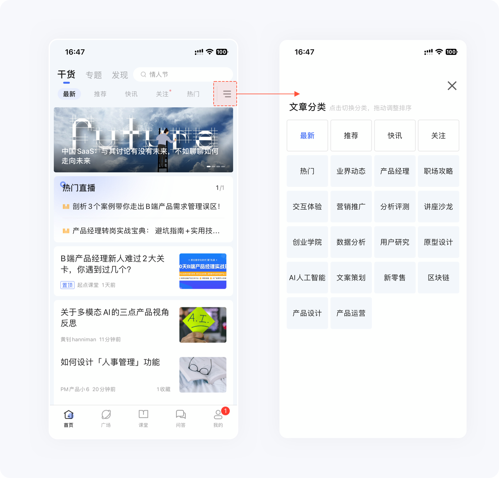 在頁面細節元素設計上,將角標樣式優化為右側的書簽的樣式,整體感受更像現實生活中的書簽。在輔助標簽的設計上,將純文字樣式優化為右側這種多彩面型的樣式,強化內容的豐富和多元。