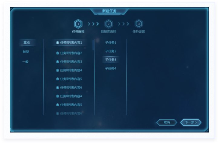 視覺方面使用大屏常用的深色背景,主色采用藍色配色,通過整體排版,元素的設計,來凸顯科技感。頁面布局方面,采用模塊化布局,便于區分信息類別;扁平化的視覺元素+框式設計,最大程度地減少頁面元素的干擾,提升頁面內容承載量。